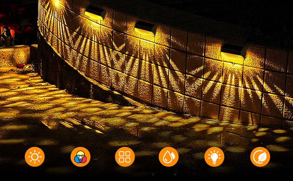 Ideálna voľba pre záhrady, ploty, balkóny, chodníky, schodiská atď. Balenie obsahuje skrutky potrebné na montáž, takže lampu môžete ľahko upevniť a namontovať na držiak. Možno ho tiež pripevniť priamo pomocou obojstrannej lepiacej pásky, vďaka čomu je inštalácia rýchla a jednoduchá.