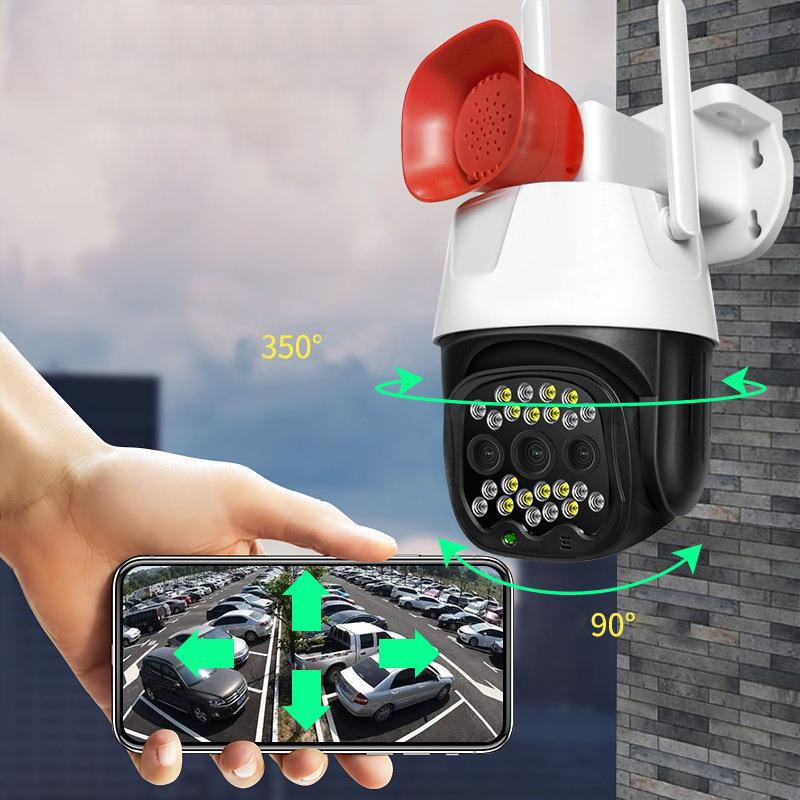 Táto moderná vonkajšia bezpečnostná kamera s funkciami 350° panoramatického záberu a 90° náklonu a dvojitým poplašným systémom - svetelným alarmom a detekciou pohybu - zabezpečuje ochranu vášho domova a rodiny. Kamera využíva senzory na detekciu pohybu, ktoré zaznamenávajú pohyb a odosielajú upozornenia do telefónu. Detekcia PIR tepla ľudského tela účinne znižuje počet falošných poplachov spôsobených hmyzom, lístím, dažďom a snehom.