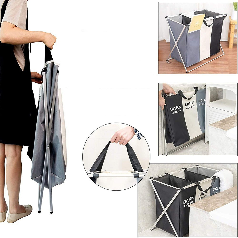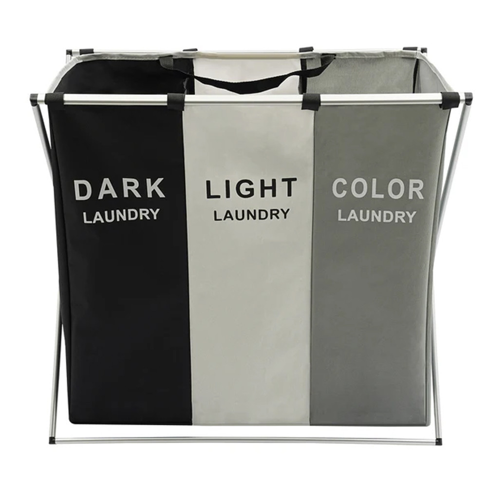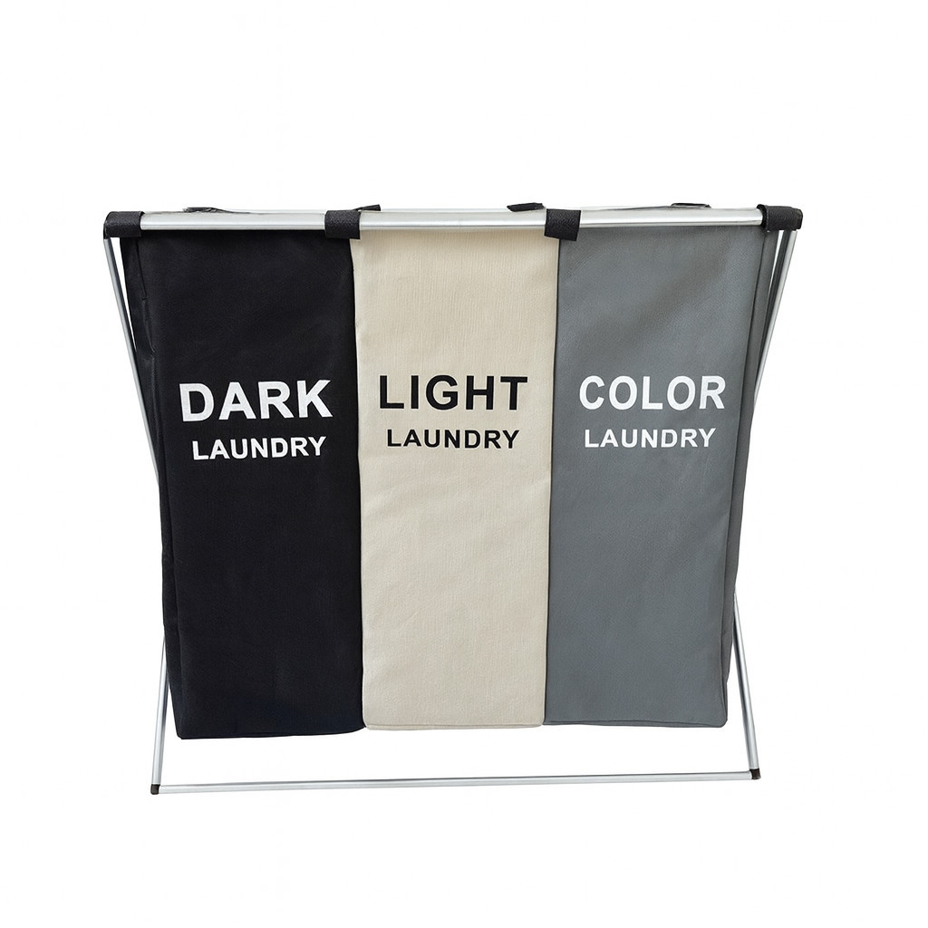 Tento moderný a praktický 3-priehradkový kôš na triedenie bielizne ti pomôže s predbežným roztriedením oblečenia, vďaka čomu ušetríš čas pri praní a zároveň sa vyhneš zafarbeniu odevov. Každá priehradka je označená samostatným nápisom.