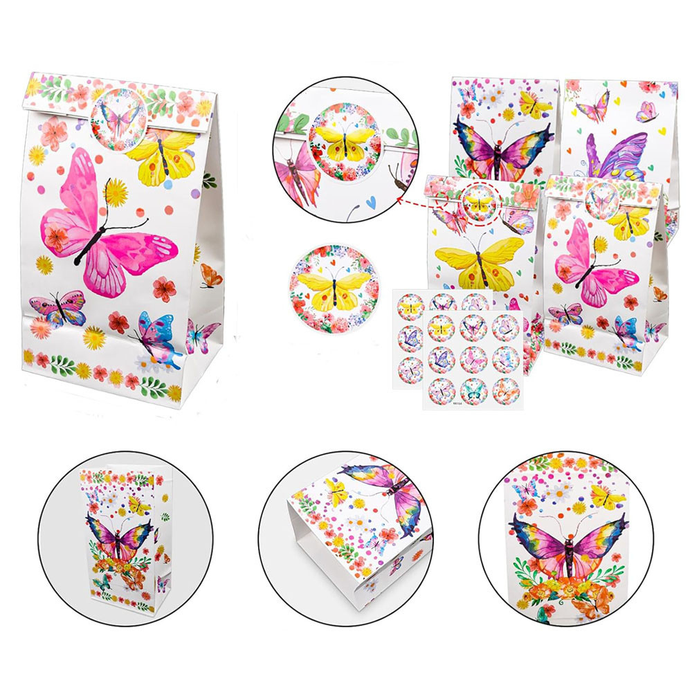 48-kusová Motýlia darčeková párty sada – Darčekové vrecúška, kľúčenky, náramky a nálepky