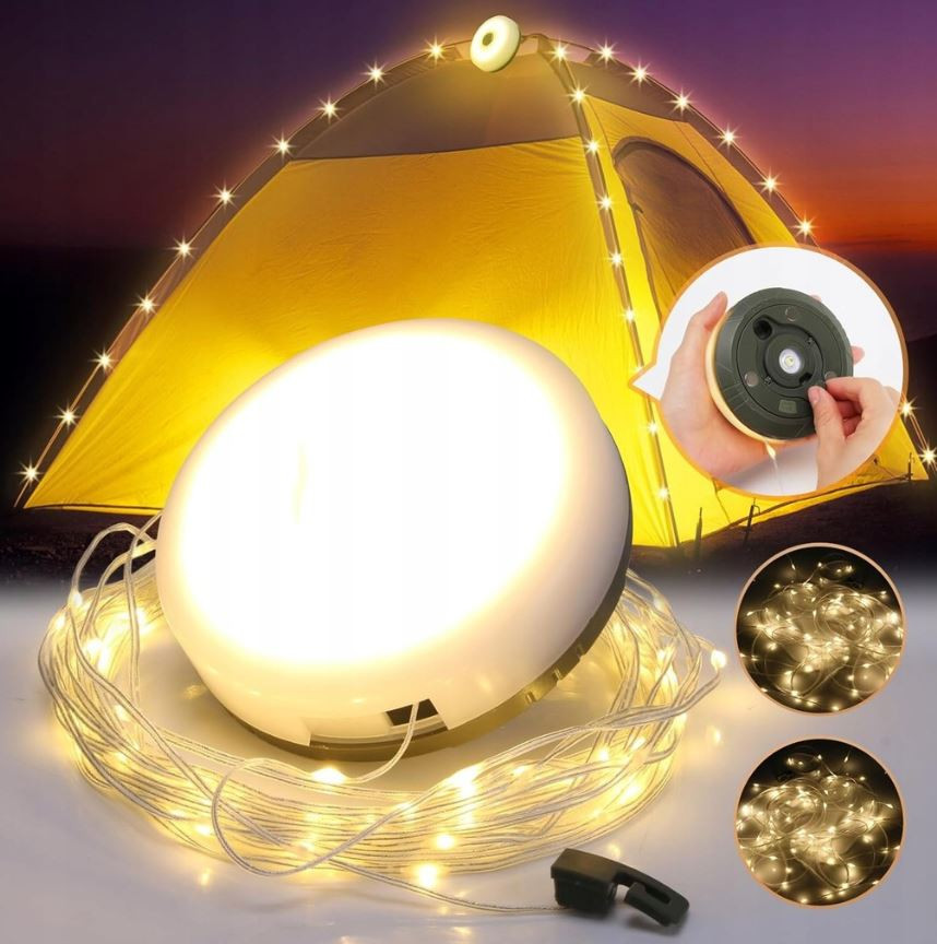 Akumulátorová LED kempingová lampa s dĺžkou 10 m je ideálnou voľbou pre každého kempingového nadšenca, turistu alebo milovníka prírody. Teplé LED svetlá vytvárajú príjemnú atmosféru a zároveň poskytujú dostatok svetla na osvetlenie celého stanu, záhrady alebo terasy.
