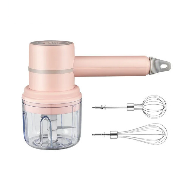 Akumulátorový 3-rýchlostný mini elektrický mixér + elektrický mini kuchynský sekáčik 2 v 1 - biely