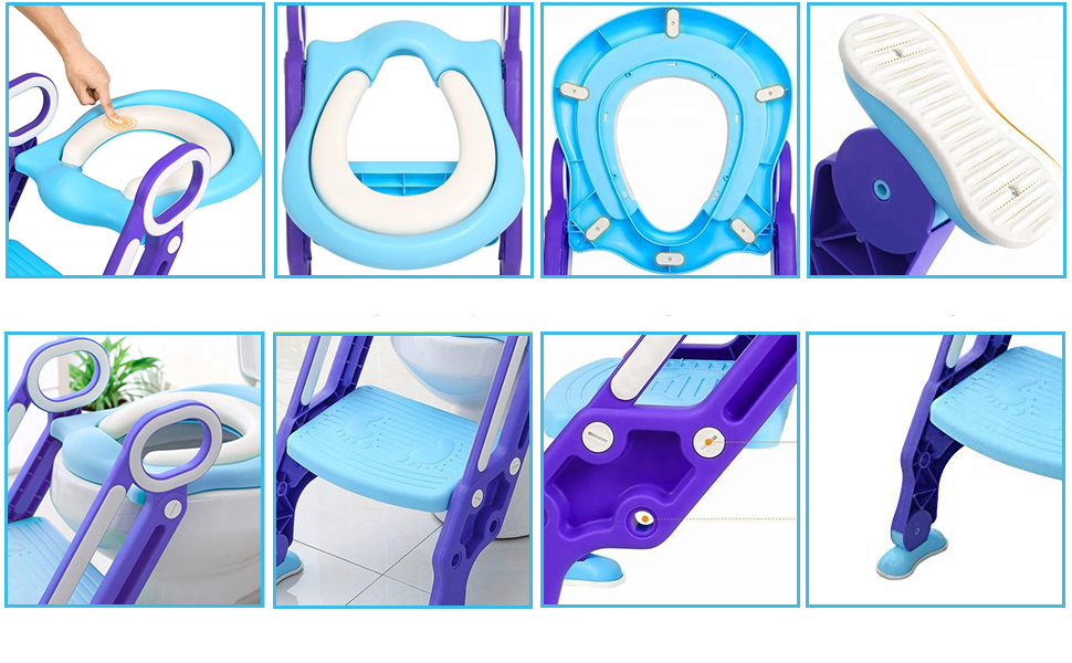 Ideálna detská pomôcka pre bezpečný WC tréning, a to najmä vďaka jej priliehavému tvaru a protiskluzovému prvku. Stolička sa dokonale prispôsobí takmer všetkým toaletám . Schodíky sú nastaviteľné, ako 2stupňová výška opierky pre nožičky. Pričom bezpečnostné záchytné kliešte v zadnej časti sedátka umožňujú produktu zostať na mieste, keď dieťa lezie na toaletu. K tomu stolička disponuje aj ergonomickými rukoväťami pre ešte pohodlnejšie použitie. Kiddyloo stolička je praktická aj tým, že je zložiteľná a ľahko skladovateľná.