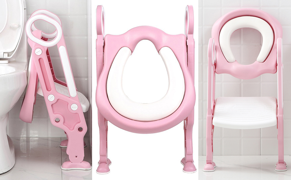 Bamny Detské sedadlo so schodíkmi na WC ružovo biela