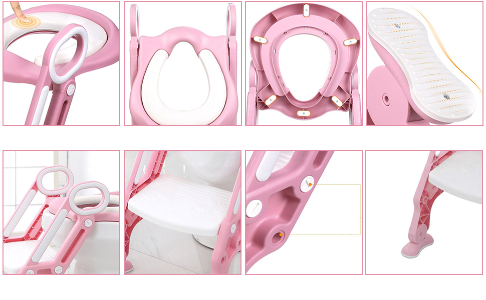 Ideálna detská pomôcka pre bezpečný WC tréning, a to najmä vďaka jej priliehavému tvaru a protiskluzovému prvku. Stolička sa dokonale prispôsobí takmer všetkým toaletám . Schodíky sú nastaviteľné, ako 2stupňová výška opierky pre nožičky. Pričom bezpečnostné záchytné kliešte v zadnej časti sedátka umožňujú produktu zostať na mieste, keď dieťa lezie na toaletu. K tomu stolička disponuje aj ergonomickými rukoväťami pre ešte pohodlnejšie použitie. Kiddyloo stolička je praktická aj tým, že je zložiteľná a ľahko skladovateľná.