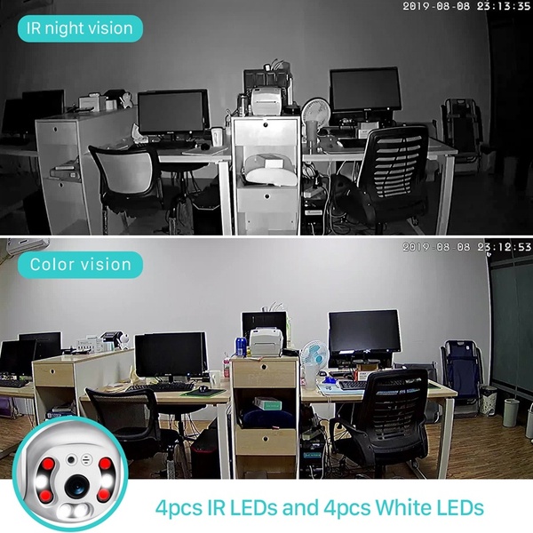 Ich výhodou je aj že má vstavané 2 vysoko výkonne LED diódy.Môžete nastaviť, aby sa automaticky zapli, keď detektujú pohyb.tak môže odradiť škodlivého votrelca alebo dokonca aj zviera.Ďalšou výhodou LED diód je, že to nebude iba čiernobiely nočný záber votrelca, ale farebný záber.