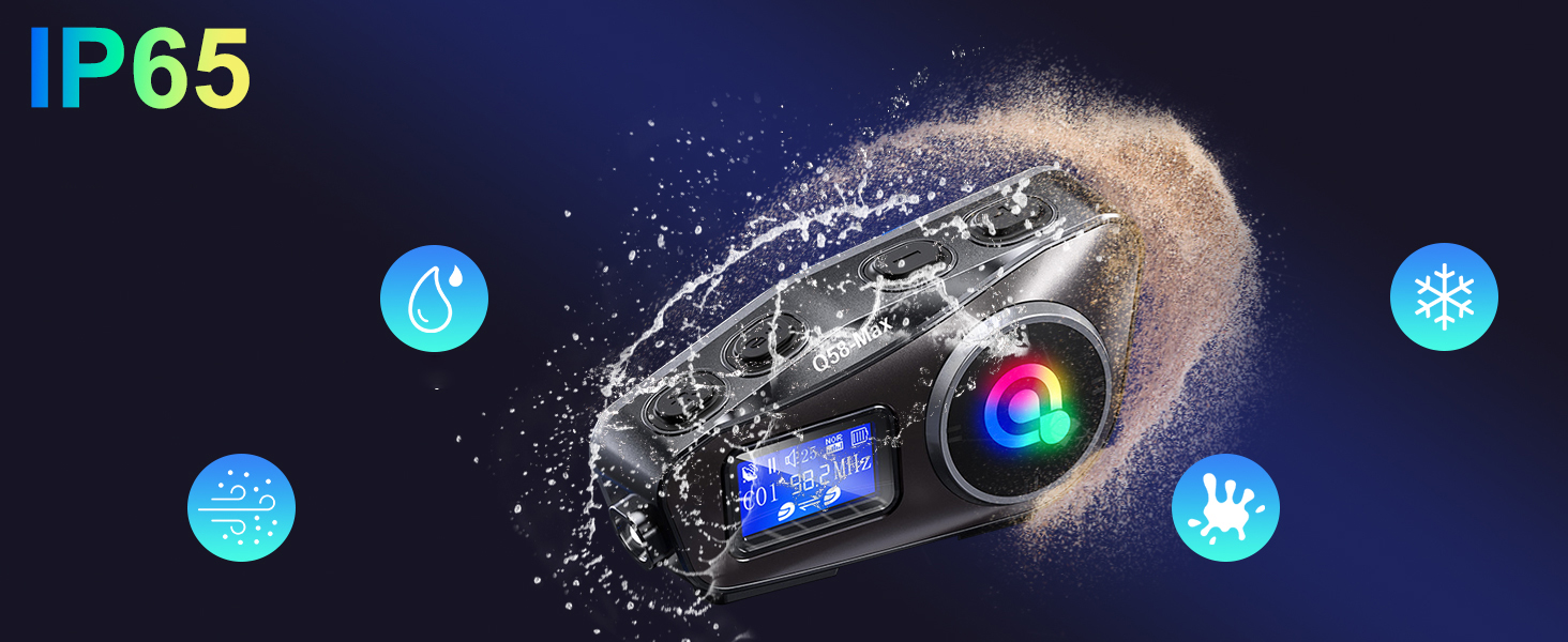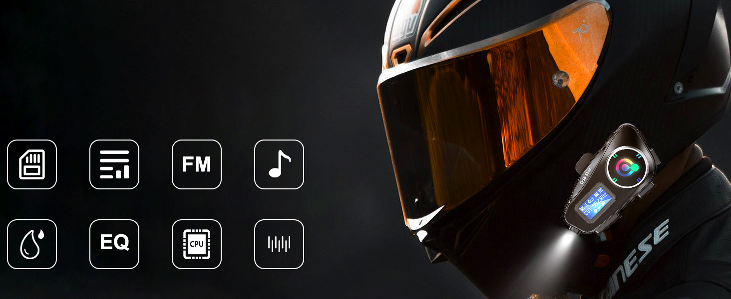 Bluetooth náhlavná súprava podporuje nielen FM rádio, ale umožňuje aj vloženie 32GB TF karty. Vďaka funkcii zdieľania hudby môžete zdieľať svoje obľúbené skladby s iným jazdcom alebo spolujazdcom. Smartfón môžete ovládať aj hlasovými príkazmi, takže počas jazdy nemusíte dávať ruky preč od volantu. Nočnú jazdu vám ešte viac spríjemní zabudovaná baterka a náladové osvetlenie RGB.