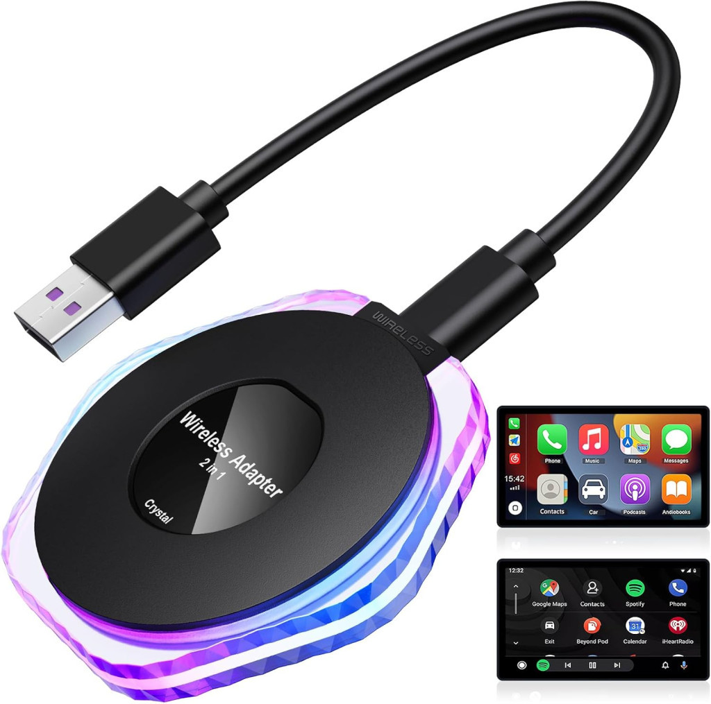 Adaptér Crystal pre Android CarPlay je kompatibilný s väčšinou modelov vozidiel, ktoré majú káblové pripojenie CarPlay a Android AUTO, ako aj s hlavnými jednotkami bez systému Android. Tento adaptér vám umožňuje pohodlne používať bezdrôtové funkcie CarPlay a Android Auto vo vašom vozidle.