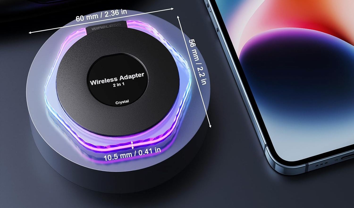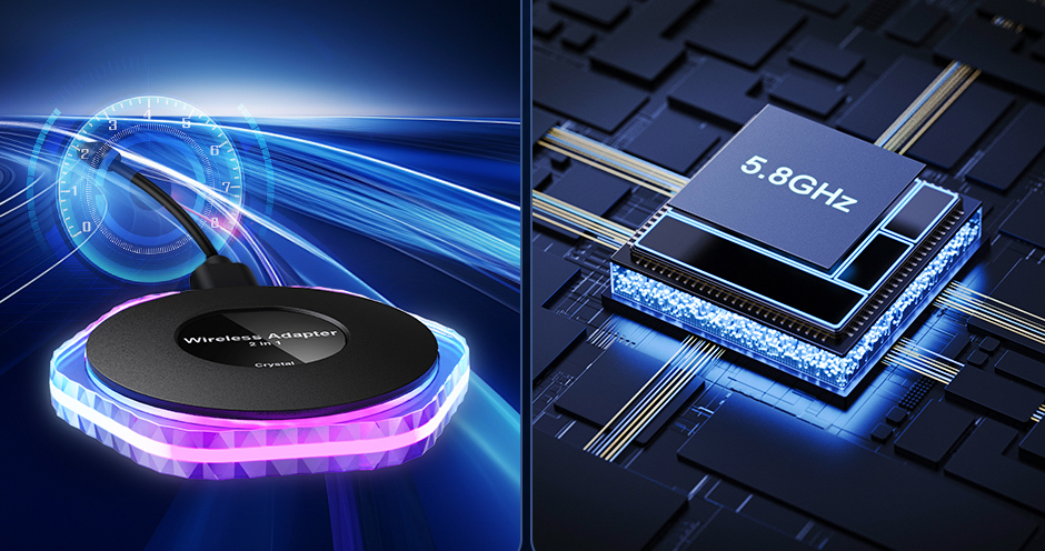 Je to mini bezdrôtový adaptér CarPlay, ktorý vďaka svojmu štýlovému a jedinečnému dizajnu nezaberie veľa miesta v aute. Predný kryštálový dizajn so zabudovaným náladovým osvetlením RGB má jasnú kryštálovú štruktúru, takže nielenže udržiava vaše auto čisté, ale je aj dokonalým doplnkom na vytvorenie príjemnej atmosféry pre vás a vašu rodinu.