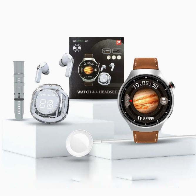 D21 smartwatch set - strieborný ciferník, sivý silikónový a hnedý kožený remienok