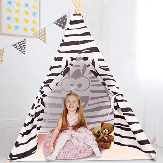Jedinečný dizajn:teepee má roztomilý kreslený dizajn zebry, vďaka ktorému sa deti cítia ako v rozprávke. Žiarivé farby zvyšujú pozornosť detí a podnecujú ich k samostatnosti, pričom si zachovávajú svoju nevinnosť.