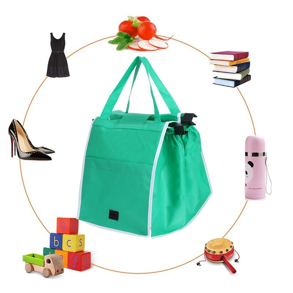 Grab Bags sú navrhnuté tak, aby ste pri nakupovaní mohli zavesiť dva okraje tašky na okraje nákupného košíka, aby ste mohli ľahko, rýchlo a pripravene zabaliť zakúpené produkty pri pokladni do otvorenej tašky.