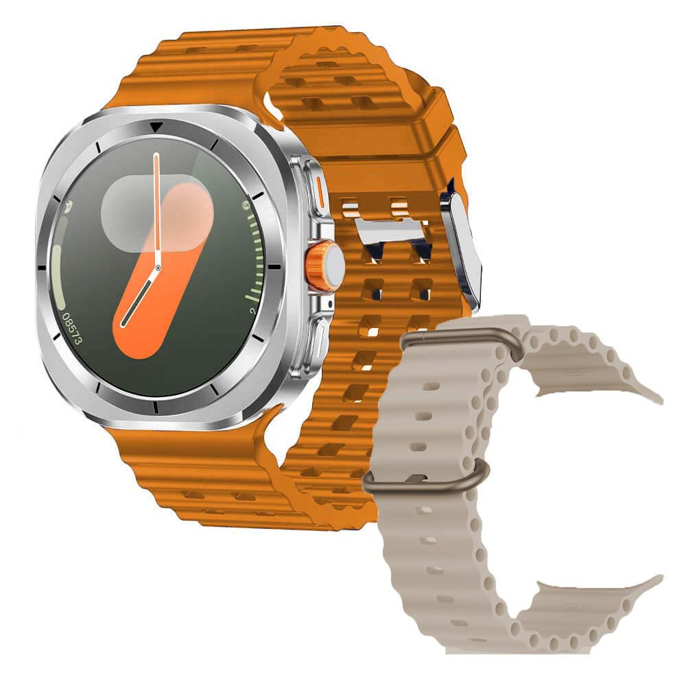 Inteligentné hodinky A25 Ultra so sivým rámom - oranžovým a čiernym silikónovým remienkom