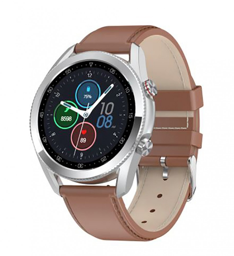 Inteligentné hodinky M2 - strieborné s hnedým remienkom