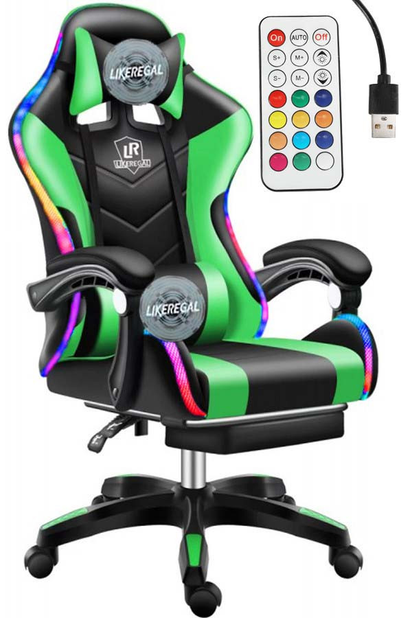 Likeregal 920 zelené herné kreslo s opierkou na nohy ,s RGB podsvietením a masážnou funkciou