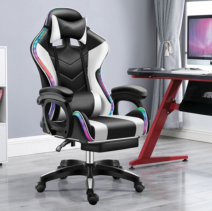 Toto profesionálne hráčske kreslo má opierku na nohy, ktorá sa dá vysunúť spod kresla, aby ste mali nie len pri sedení úplné pohodlie. Ergonomicky navrhnutý výrobok je vybavený 360-stupňovou rotáciou, nastaviteľnou výškou, nastaviteľnou opierkou hlavy, nastavením sklonu od 90 do 150 stupňov a možno ho zablokovať, aby sa dal použiť ako posteľ na krátke zdriemnutie.Toto polohovateľné kreslo poskytuje najpohodlnejší zážitok, či už sa používa v kancelárii alebo pri hraní hier, komfortné cítenie nám zdvojnásobuje efektivitu.