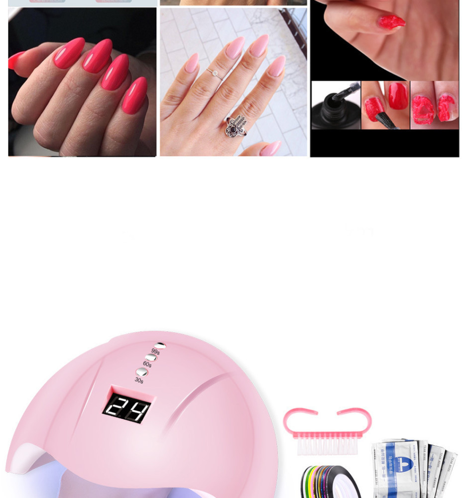 Sada na gélové nechty so UV/LED lampou je vhodná pre domáce aj profesionálne použitie. Sada obsahuje všetko čo potrebujete pre tvorbu gélových nechtov, vrátane profesionálnej UV/LED lampy. Táto lampa veľmi rýchlo a rovnomerne vytvrdzuje všetky gély aj gél laky. Lampa sa vyznačuje okrem vysokého výkonu aj moderným dizajnom a veľkým priestorom pre ruku.