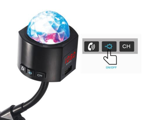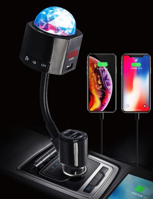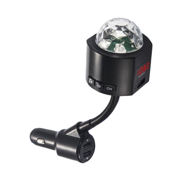 Transmitter v sebe kombinuje rôzne zariadenia – USB nabíjačku s konektormi, handsfree a hudobný prehrávač. Vďaka jednému zariadeniu tak získate niekoľko praktických pomôcok do vášho automobilu. Ľahko tak môžete nabíjať svoj mobilný telefón a ďalšie zariadenia, zároveň počúvať hudbu z USB, smartfónu. Bonusom navyše je efektné disko osvetlenie . Je vybavený digitálnym displejom a ovládacími tlačidlami pre jednoduchú obsluhu všetkých funkcií. Pomocou modulu Bluetooth, integrovaného mikrofónu a funkcie handsfree môžete pohodlne vybavovať aj telefónne hovory.