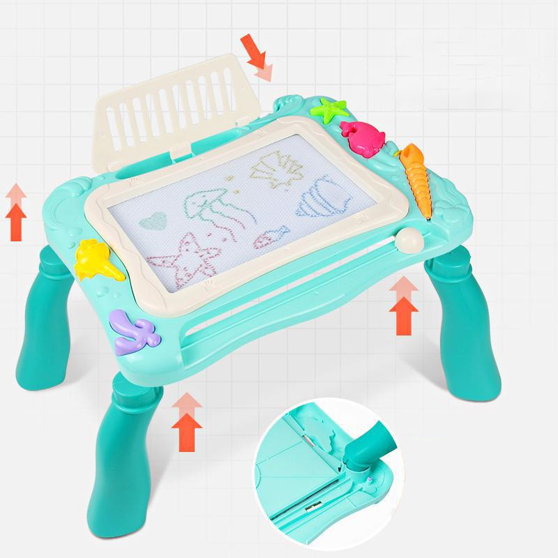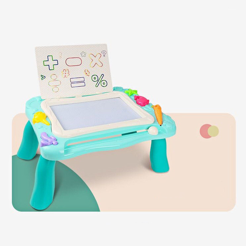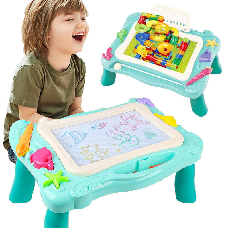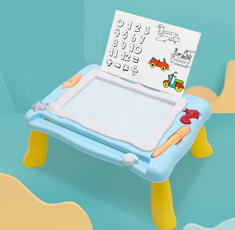 Detská vzdelávacia a rozvojová kresliaca tabuľa je vyrobená z plastu s magnetickým perom a pečiatkami. Myšlienka kresliacej tabule spočíva v tom, že na biely povrch možno kresliť perom, pero zanecháva farebné stopy. Keď skončíte s kreslením, môžete ju vymazať pomocou posuvníka v spodnej časti tabule.