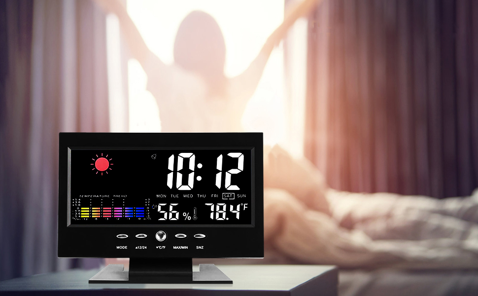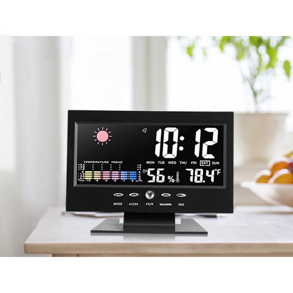 Táto meteostanica má nielen farebný displej, ale je vybavená aj mnohými ďalšími užitočnými funkciami. Je ideálnou voľbou pre tých, ktorí chcú mať aktuálne informácie o počasí. Vďaka kalendáru budete vždy vedieť, aký je deň, zatiaľ čo podsvietený digitálny displej vám umožní ľahko prečítať predpoveď počasia. Umožňuje tiež ľahko skontrolovať teplotu a vlhkosť vzduchu. Okrem funkcie hlasového ovládania a podsvietenia ho možno používať aj ako vstavaný budík s funkciou budenia a opakovaného budenia. Ideálny do všetkých domácností a kancelárií.