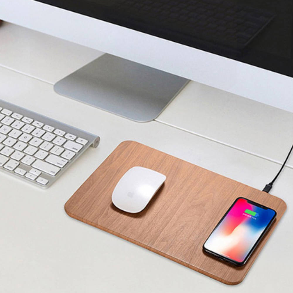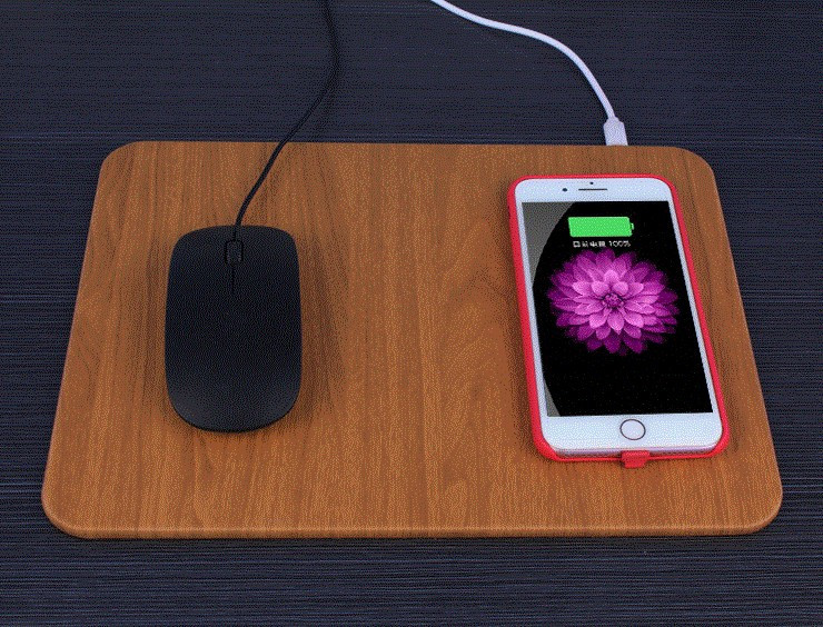 Drevená podložka pod myš s QI bezdrôtovým nabíjaním