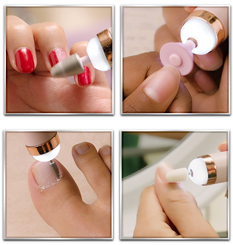 Balenie obsahuje 5 rôznych vymeniteľných nádstavcov , ktoré môžete ľubovoľne vymieňať podľa potreby . Diamantový nádstavec odstraňuje zrohovatenú kožu a mozole. Malé a veľké brúsne kužele sa používajú na vyhladenie drsných a zvlnených oblastí nechtov. Leštiaci nadstavec poskytuje krásny a hladký povrch nechtov. Špeciálna ružová nadstavcová hlavica vám umožní upraviť a vytvarovať nechty podľa vašich predstáv.