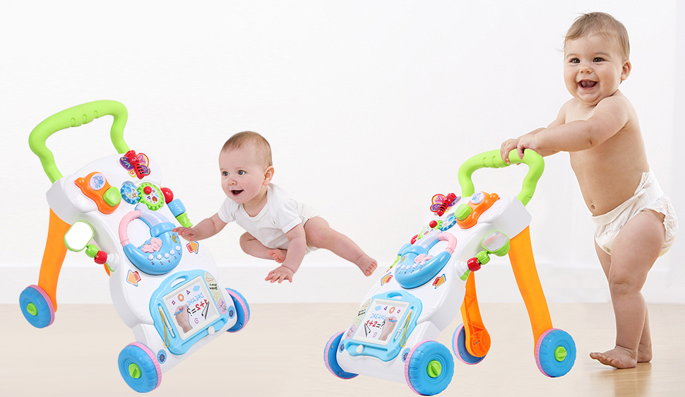 Hra 2 v 1: ideálna na sedenie a hranie od 6 mesiacov a od 9 mesiacov sa dieťa môže hrať v stoji a zároveň trénovať chôdzu.