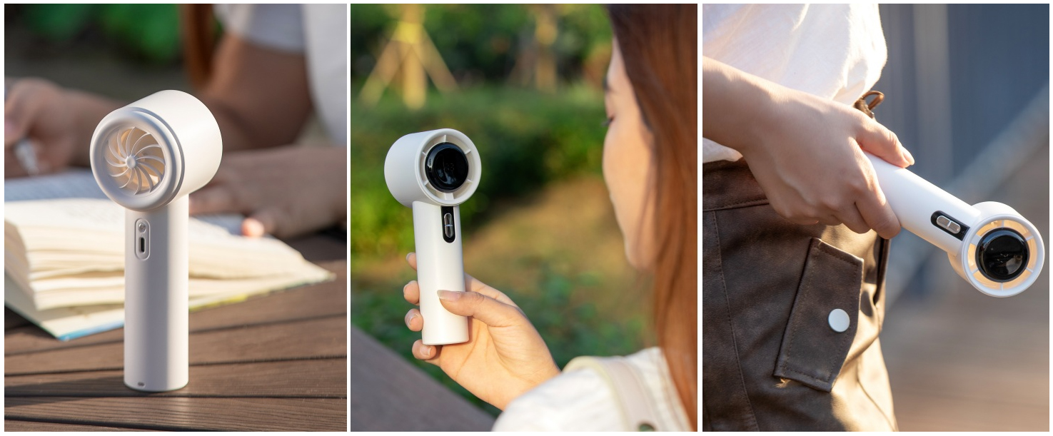 Prenosný ventilátor je výkonné ručné chladiace zariadenie, ktoré aj počas najhorúcejších dní zabezpečí okamžitý pocit sviežosti. Vďaka modernému dizajnu so 6 lopatkami a trojfázovému bezuhlíkovému motoru dosahuje až 20 000 otáčok za minútu, čím vytvára až trikrát silnejší prúd vzduchu ako bežné ventilátory – s rýchlosťou vzduchu až 29,5 ft/s.