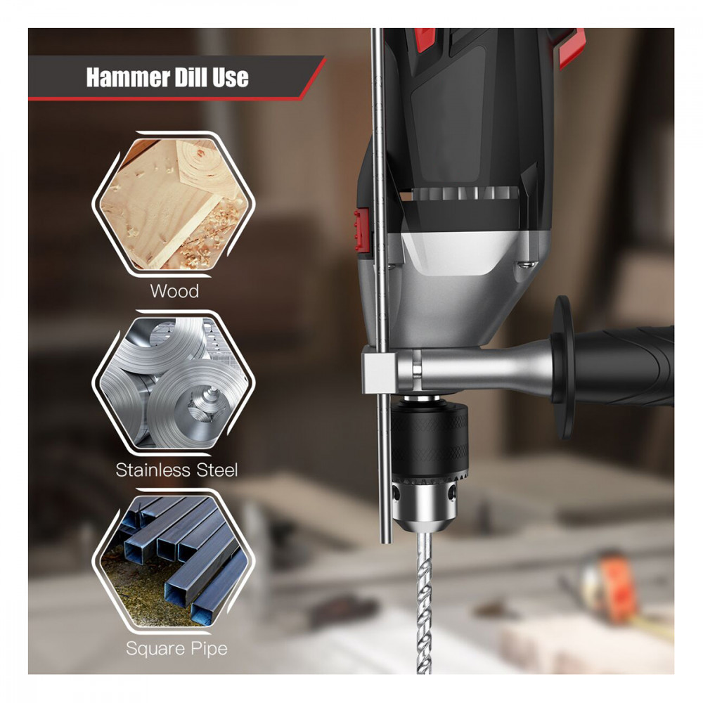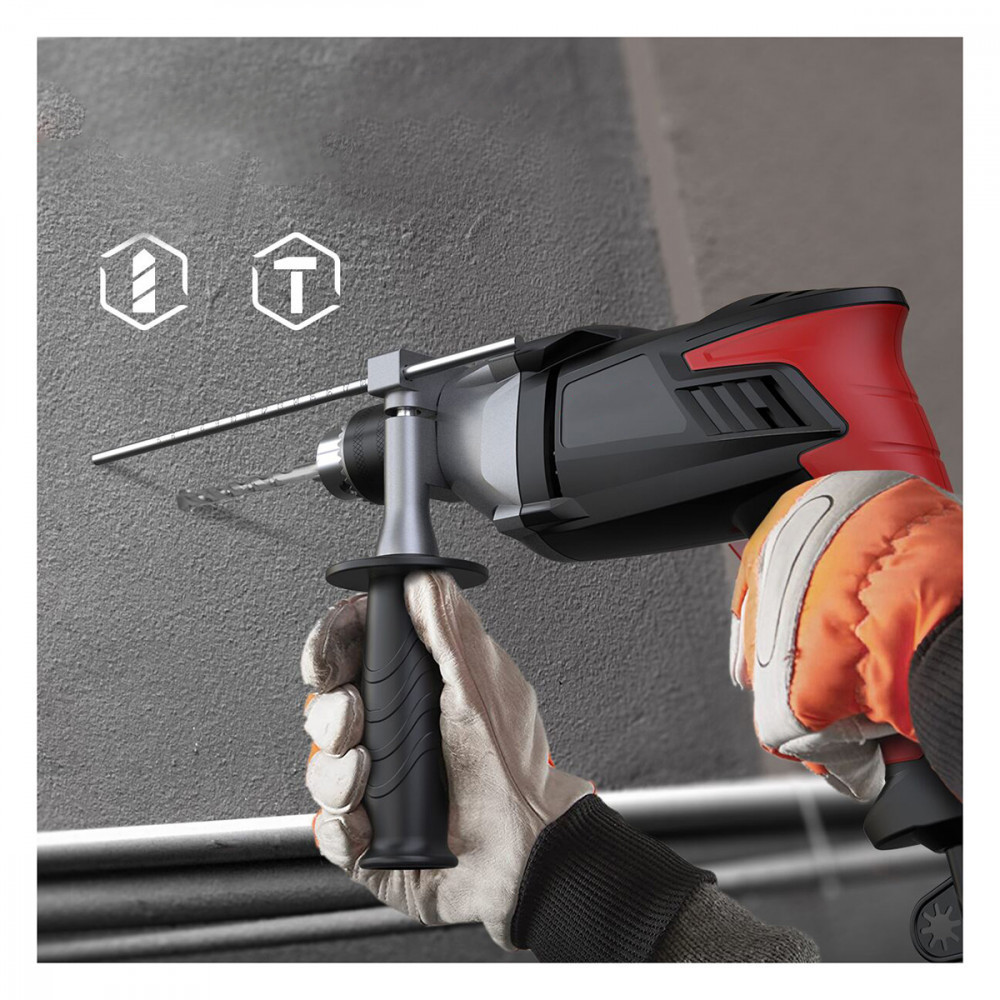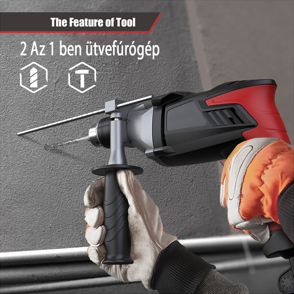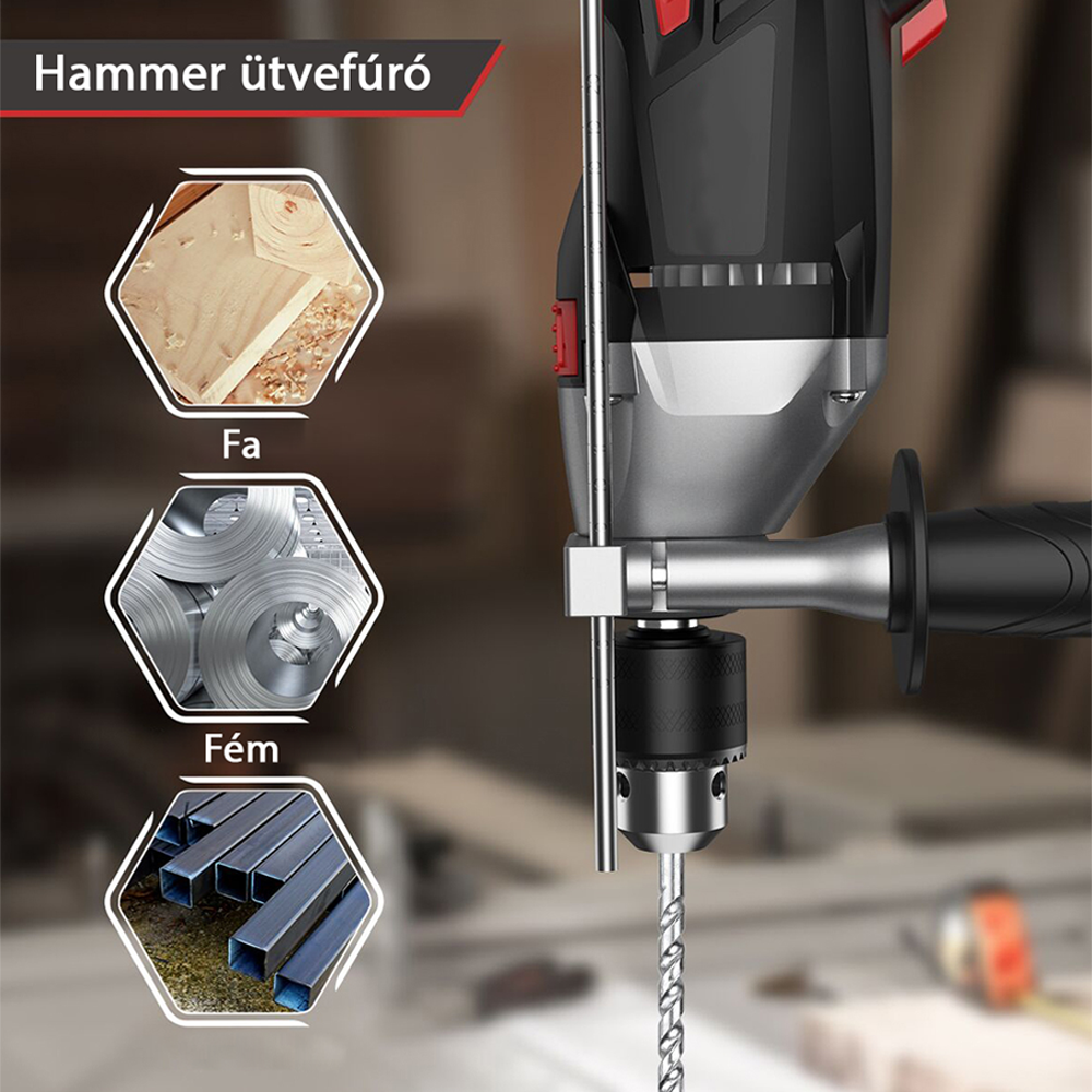 Kombinácia príklepu a vŕtačky s horným gombíkom umožňuje jednoduché prepínanie medzi funkciami príklepu a vŕtačky. Funkcia kladiva na vŕtanie do stien a funkcia vŕtačky na vŕtanie dielov. Či už ide o kov, drevo alebo stenu, prevŕta čokoľvek.