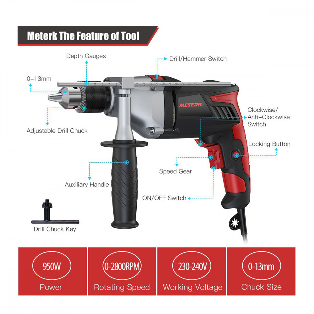 Príklepová vŕtačka Meterk 950W s kufríkom