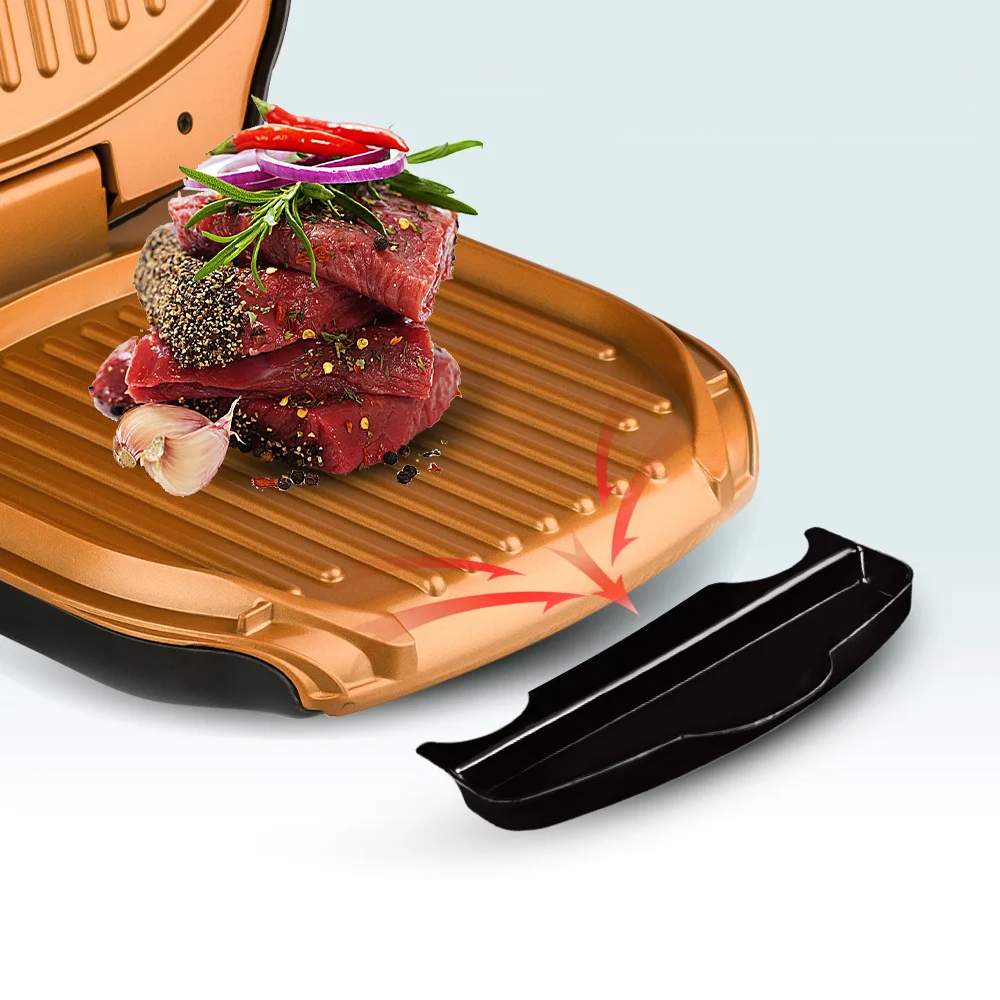 Môžete ho použiť aj na domácu prípravu mäsa, rýb alebo grilovanej zeleniny, ako aj sendvičov s rôznymi náplňami, kebabu a mnohých ďalších pokrmov. Spotrebič má indikátor výkonu.
