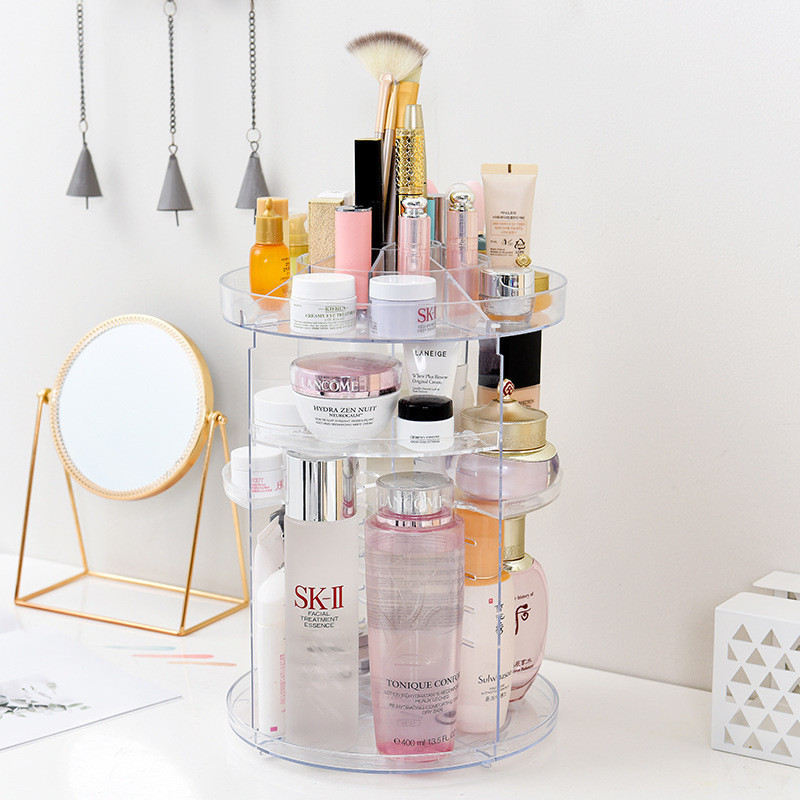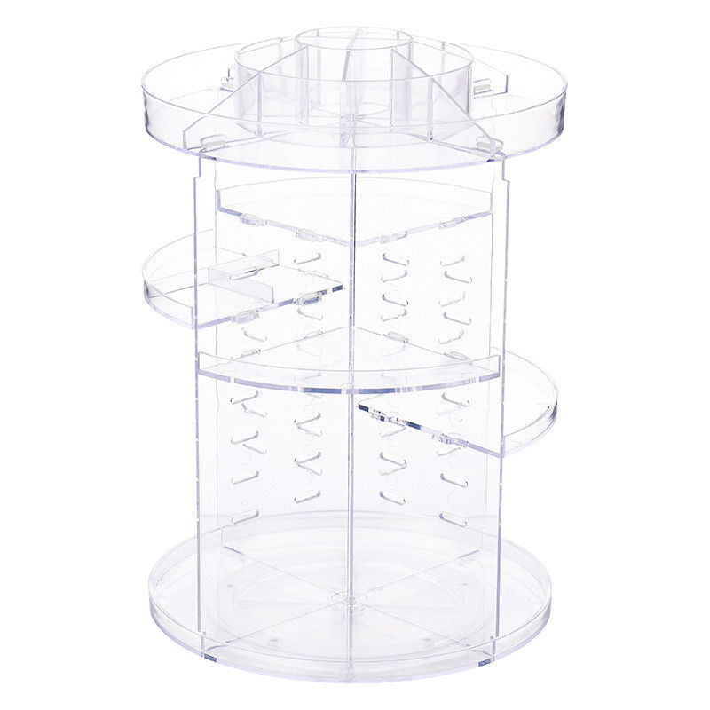 Rotačný organizér na líčenie je ideálny na to, aby ste mali kozmetické výrobky vždy po ruke a prehľadne usporiadané. Tento všestranný a praktický organizér na make-up vám umožní pohodlný prístup ku všetkému, čo potrebujete na starostlivosť o seba a nanášanie make-upu, pričom zaberie minimum miesta. Jeho otáčanie o 360° tiež uľahčuje používanie a jeho nastaviteľné poličky sa prispôsobia veľkosti položiek, ktoré chcete uložiť: krémy, tonery, parfumy, štetce, očné tiene, maskara, rúž, lícenka, make-up, púder, lak na nechty atď.