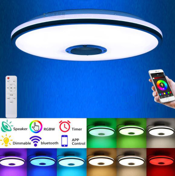 Moderné stropné svietidlo má integrovaný reproduktor. Je možné cez neho prehravať hudbu vďaka bluetooth pripojeniu. Svietidlo má aj diaľkový ovládač, cez ktorý je možné ovládať svetlo – stmievanie, teplotu farby, zapínanie, ale taktiež slúži ovládač aj pre ovládanie hudby.(3000K-6000K).
