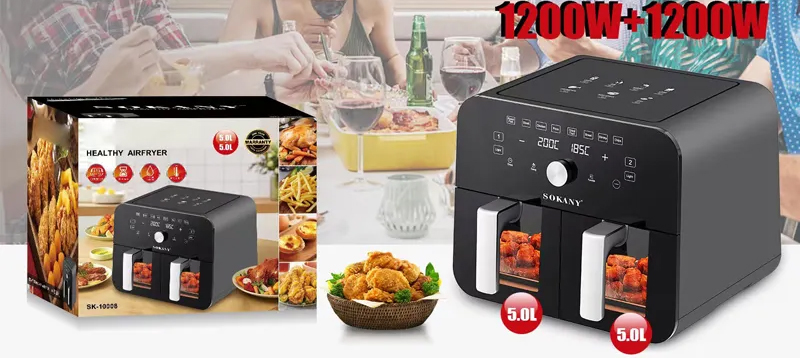 SOKANY Duálna teplovzdušná fritéza 10L prehľadným dotykovým panelom