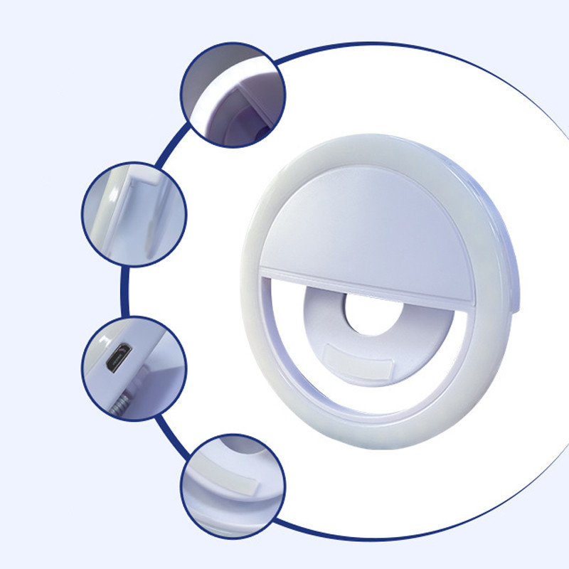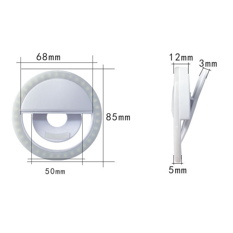 Prenosné selfie svetlo s 28 LED diódami, ktoré možno vďaka praktickej funkcii klipu ľahko pripevniť na displej telefónu alebo notebooku. Ideálne na natáčanie videí, vlogov alebo pre každého, kto chce robiť fotografie v profesionálnej kvalite. Biele svetlo má tri nastaviteľné úrovne jasu, ktoré zaisťujú dokonalé osvetlenie za každých okolností. Dvadsaťosem diód LED je usporiadaných do kruhového vzoru, ktorý poskytuje rovnomerne rozptýlené svetlo na osvetlenie tváre.