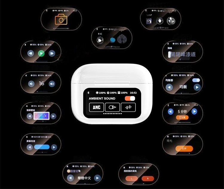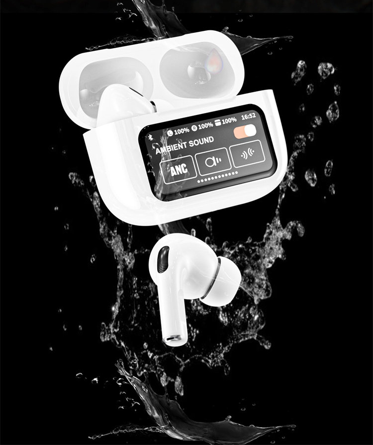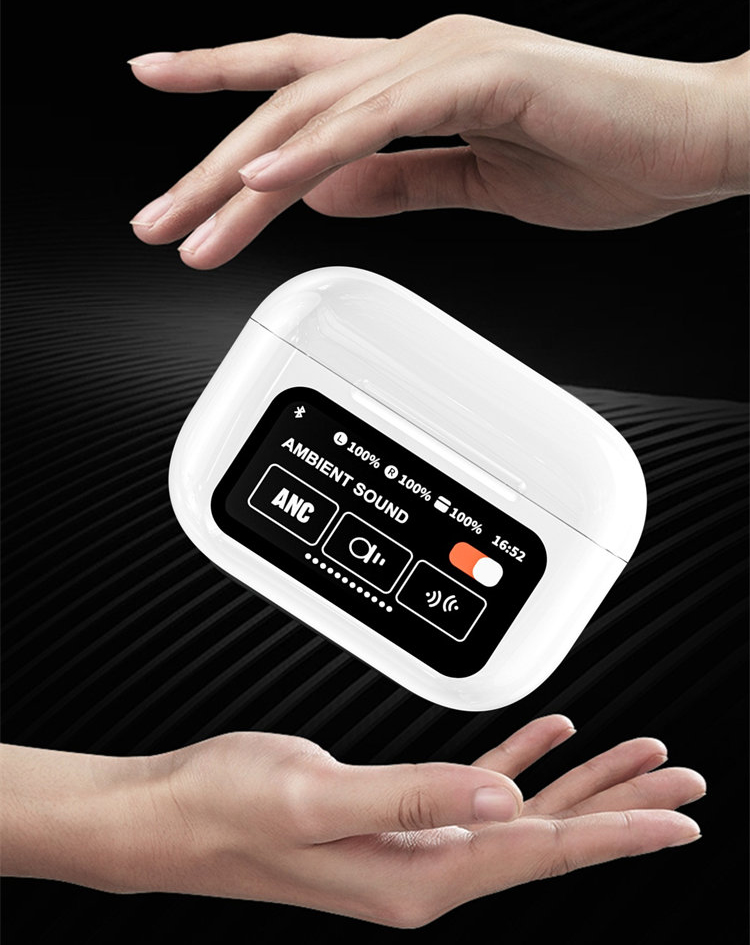 Puzdro slúchadiel je vybavené inteligentným dotykovým displejom s rozmermi 0,78 x 1,37 palca v estetickej a chladnej farbe, ktorý je navrhnutý tak, aby poskytoval inteligentné ovládanie funkcií telefónu aj slúchadiel.
