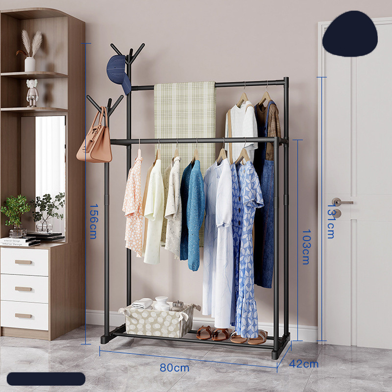 Výškovo nastaviteľný vešiak na oblečenie sa ľahko premiestňuje a možno ho použiť v šatníkoch, predsieňach, spálňach alebo sušiarňach na uloženie rôzneho oblečenia. Dve tyče v rôznej výške umožňujú zavesenie rôznych dĺžok oblečenie a viac miesta. Nastaviteľná výška a šírka.