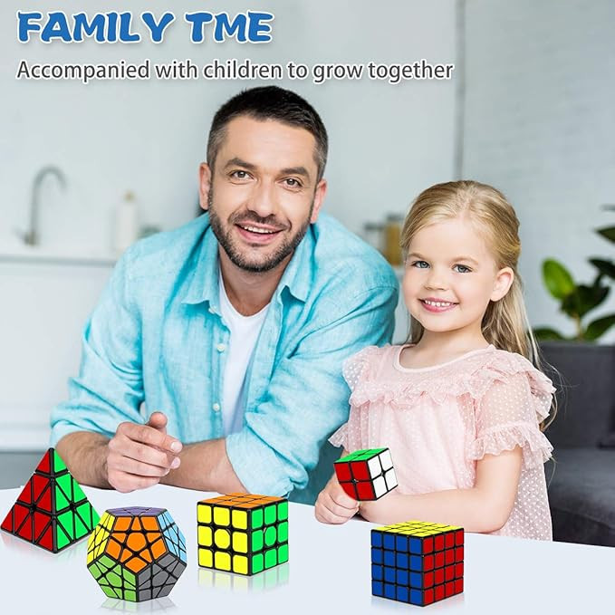 Balenie obsahuje 5 rôznych hlavolamov: kocky 2×2, 3×3, 4×4, pyramídový puzzle a Megaminx. Táto sada je ideálnou voľbou pre deti, dospelých, začiatočníkov aj pokročilých.