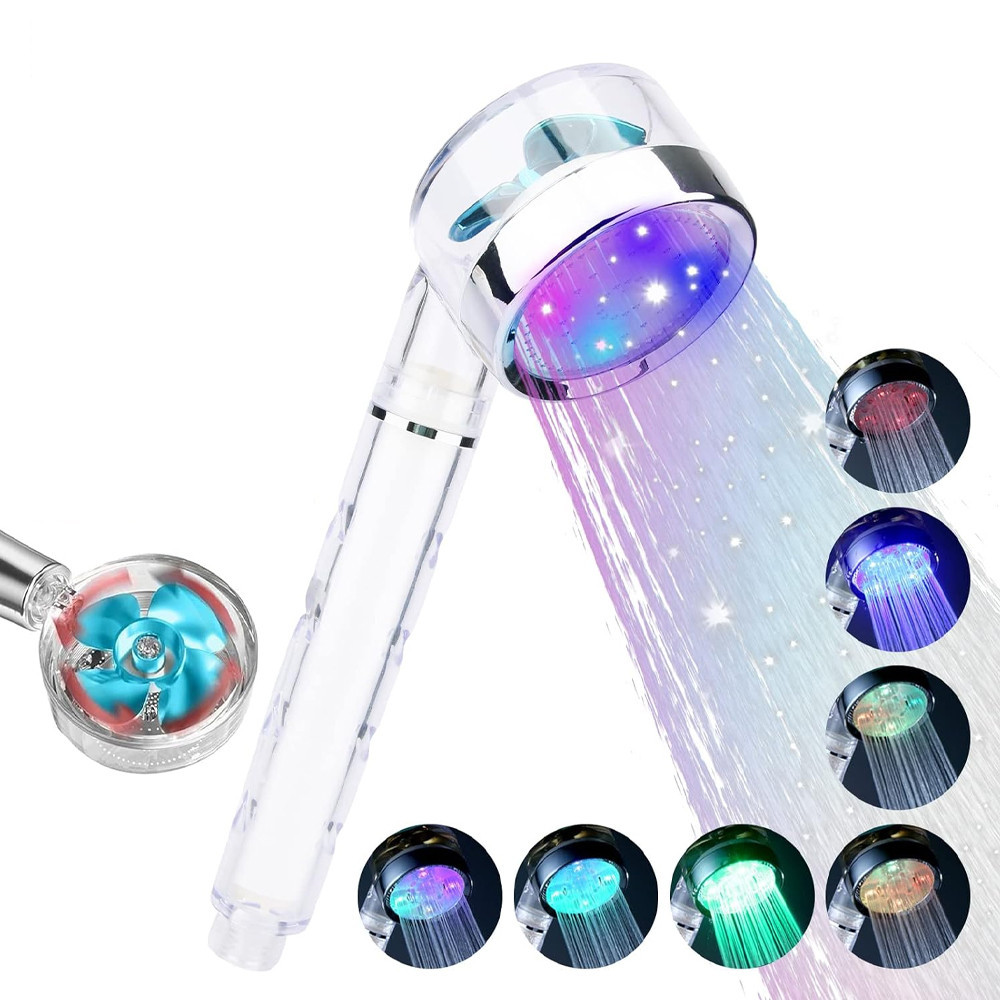 Filtračná sprchová LED hlavica s meniacimi sa farbami: LED svetlá sú poháňané tečúcou vodou, takže nie sú potrebné žiadne batérie. Blikajúce farby LED sa automaticky menia každých niekoľko sekúnd, čím umocňujú zážitok zo sprchovania.