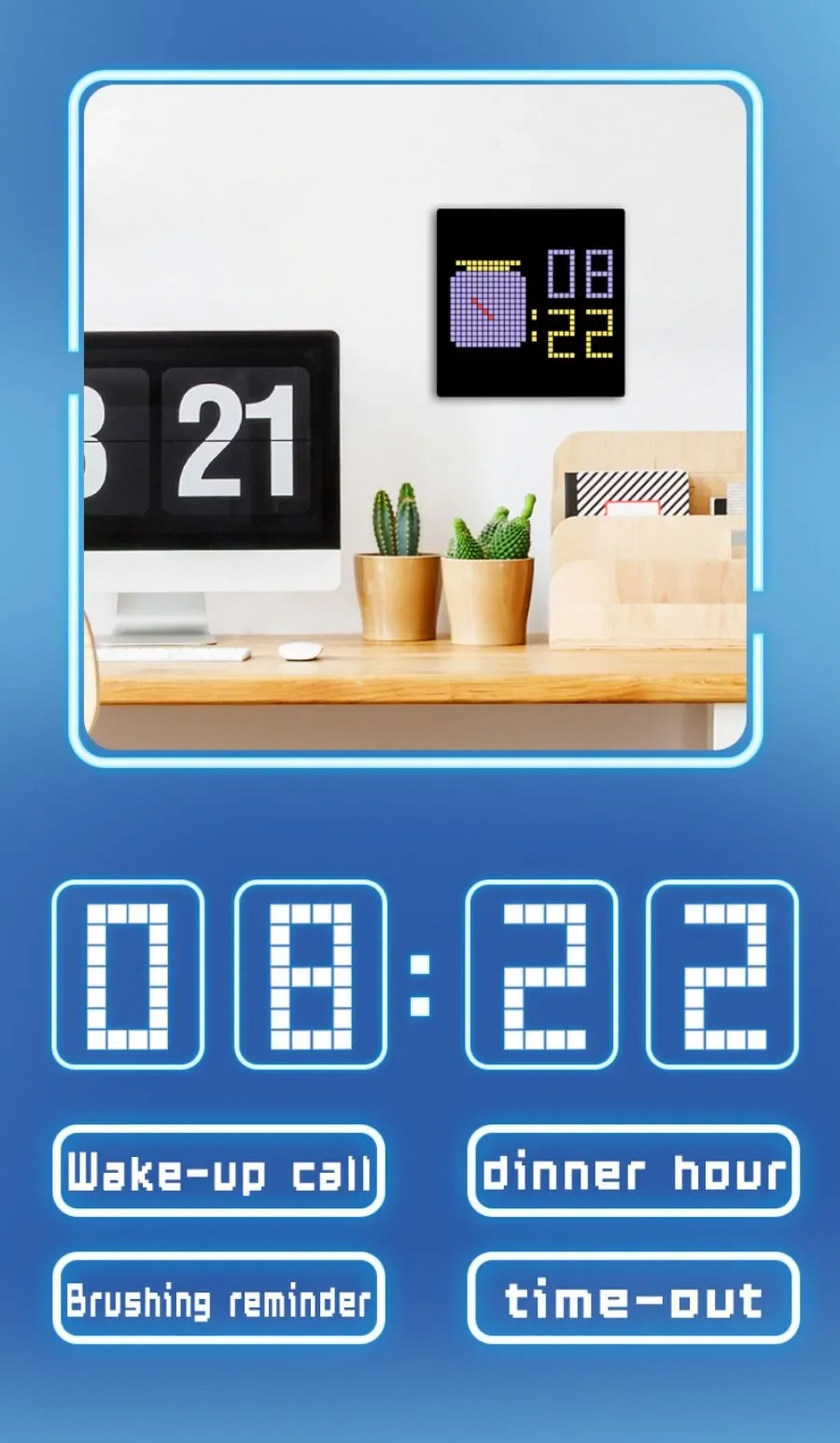 Pixel Art Digital Frame: tento digitálny rám ponúka zábavnú a užitočnú technológiu. Môže sa používať ako inteligentné nástenné hodiny, odpočítavacia tabuľa, lampa alebo vizualizér hudby. Najzábavnejšie je však zobrazenie pixelového umenia podľa vlastného návrhu, ktoré môžete vytvoriť prostredníctvom aplikácie.