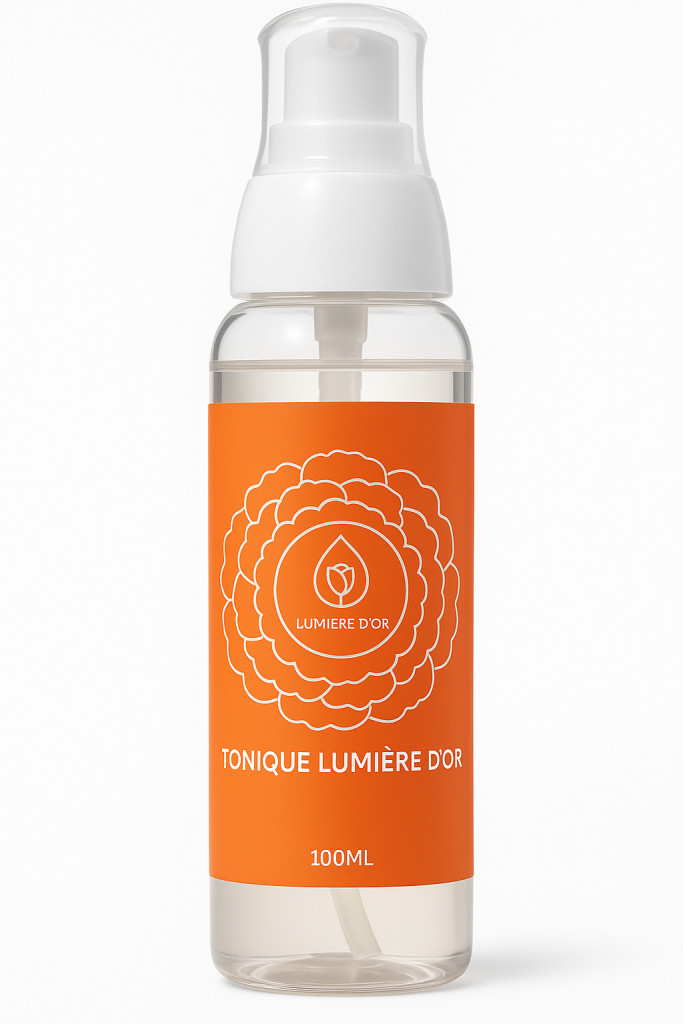 Tonique Lumière D’Or je 100 % prírodné a organické tonikum, ideálne pre všetky typy pleti. Vďaka extraktu z kurkumy prirodzene rozjasňuje a zjednocuje tón pleti, zároveň ju spevňuje a sťahuje póry.