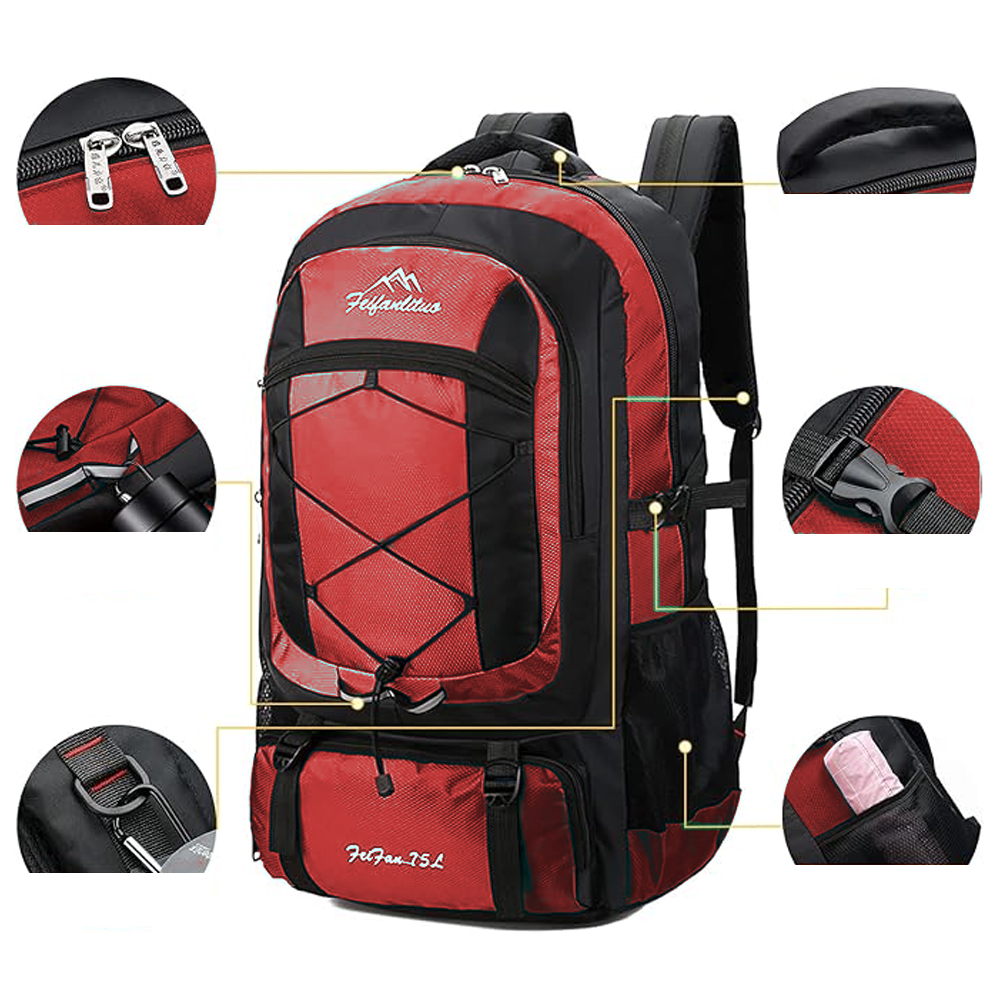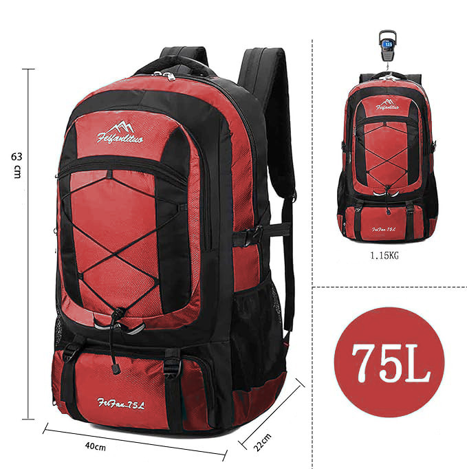 Veľká kapacita: 85 litrov extra veľkokapacitný turistický batoh s jednou hlavnou priehradkou na zips, 3 prednými vreckami na zips, dvoma bočnými popruhmi a viacerými prackami na zavesenie. Možno doň uložiť notebooky, fotoaparáty, trekingové palice, stany, knihy, oblečenie, obuv, fľaše na vodu, dáždniky a ďalšie veci každodennej potreby. Tento turistický batoh si môžete vziať so sebou na cestovanie, horolezectvo, turistiku, kempovanie, rybárčenie atď.
