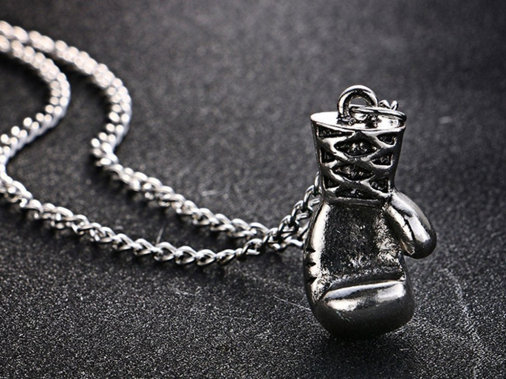Strieborný prívesok s náhrdelníkom.Tento prepracovaný prívesok v tvare rukavice je ideálným darčekom pre milovníkov boxu a bojových umení.