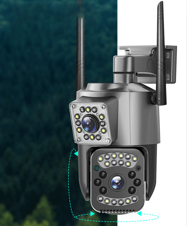 Vonkajšia bezpečnostná IP kamera s dvoma objektívmi, 10-násobným zoomom a nočným videním - 2x2 MP, 4G