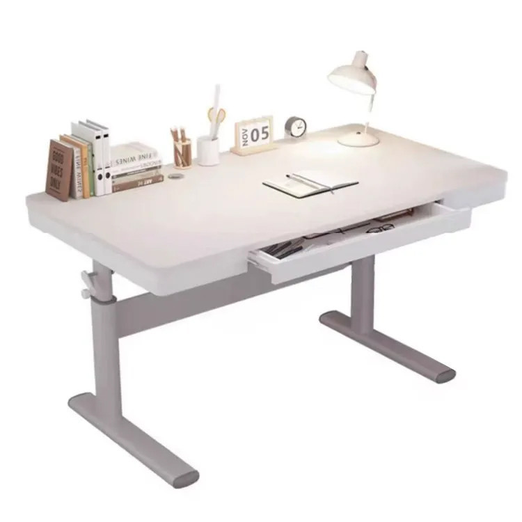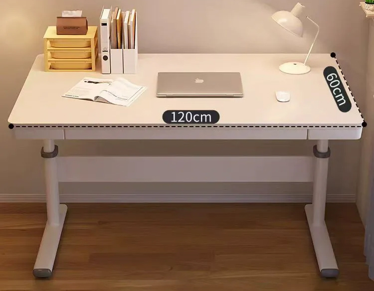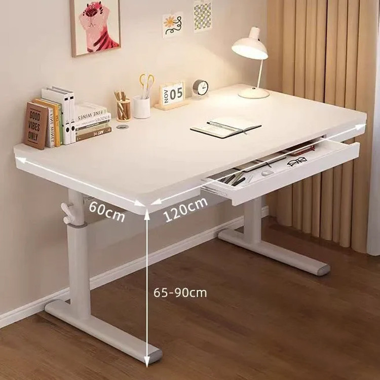 Výškovo nastaviteľný písací stôl so zásuvkou, biely, 120×60 cm