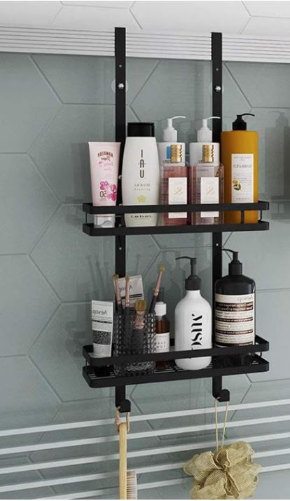 Závesná polička do sprchy – s dvoma policami a závesnými háčikmi