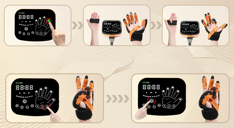 Komplexný tréning prstov: Rukavica ponúka päťprstové rotačné cvičenie, sekvenčné ťahové tréningy, uvoľňovanie svalového napätia a zrkadlový tréning, čím umožňuje synchronizovaný pohyb oboch rúk.