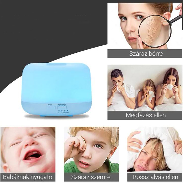Ultrazvukový aroma difúzor, zvhlčovač vzduchu pre éterické oleje (500 ml)