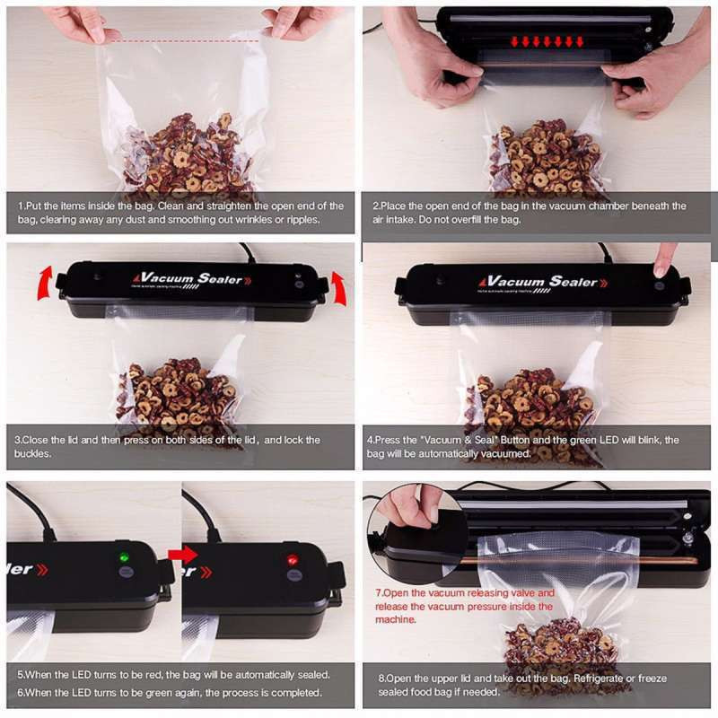 -Automatické ovládanie jedným dotykom s inteligentným LED indikátorom, ktorý sa veľmi ľahko používa. Inteligentné automatické vákuové balenie a uzatváranie jedným jednoduchým stlačením.