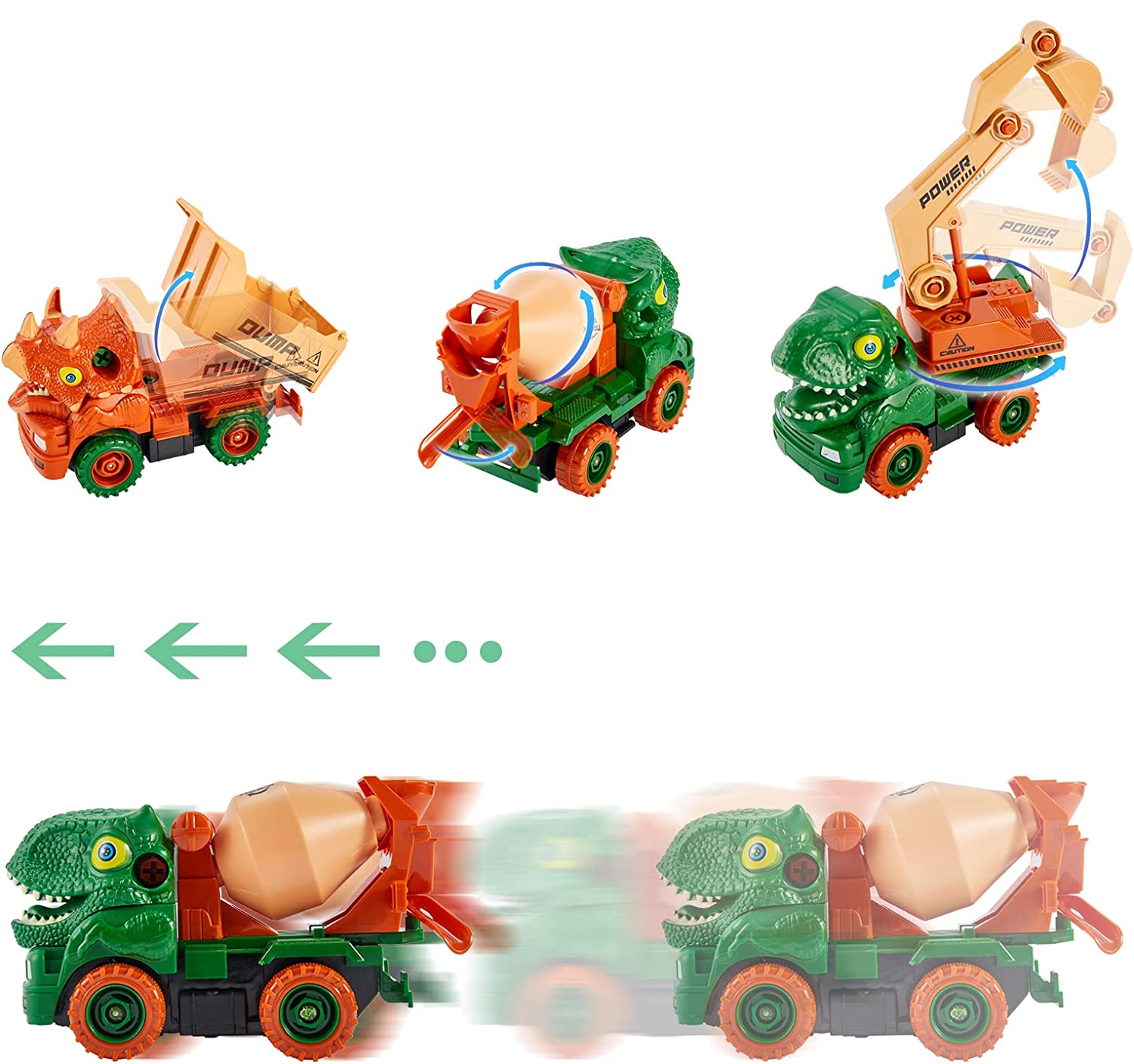 Predstavujeme nezvyčajnú kombináciu miešačky betónu s dinosaurom, ktorú si môžete zostaviť sami. Každý dobrodruh by chcel mať auto v tvare dinosaura a ďalšou atrakciou bude vlastná montáž. Počas hry si vaše dieťa precvičí presnosť, manuálne zručnosti a logické myslenie. Pomocou priloženého skrutkovača môžete auto otočiť a rozložiť.